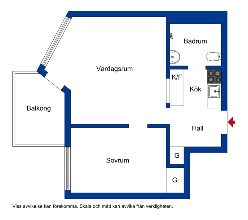 Flerfamiljshus, 31,9 kvm , 2 rum och kök, varav 1 sovrum . Areauppgifter enligt bostadsrättsföreningen . Byggnadsår: 1948