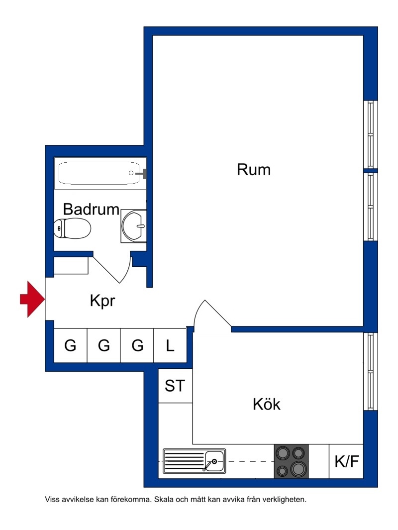 Flerfamiljshus, 35,5 kvm , 1 rum och kök . Areauppgifter enligt mäklarbild . Byggnadsår: 1965