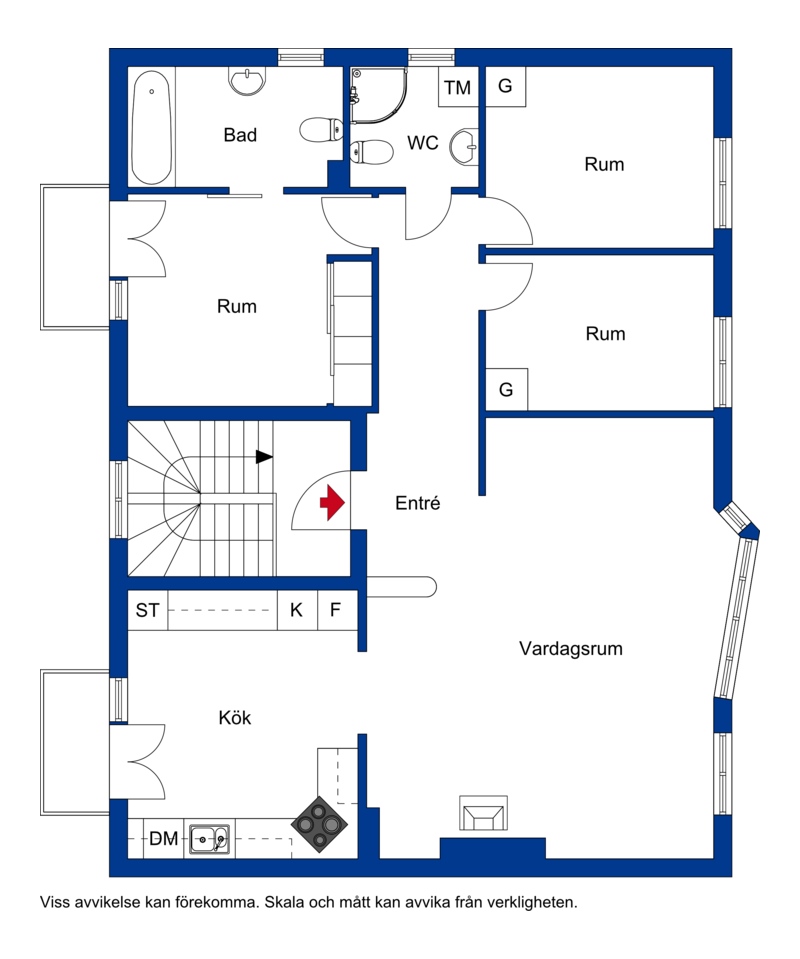 Flerfamiljshus, 94,1 kvm , 4 rum och kök, varav 3 sovrum . Areauppgifter enligt bostadsrättsföreningen . Byggnadsår: 1942/2001
