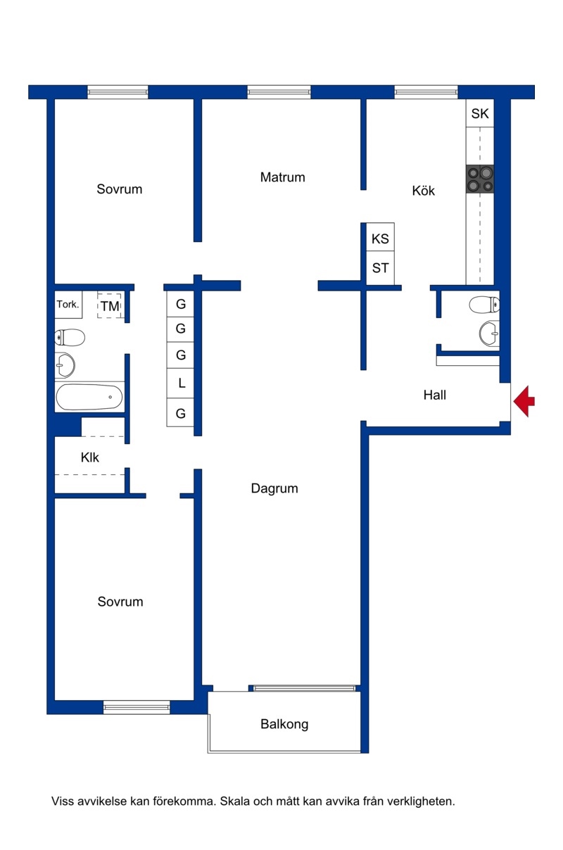 Flerfamiljshus, 116 kvm , 4 rum och kök, varav 2 sovrum . Areauppgifter enligt bostadsföreningen . Byggnadsår: 1966