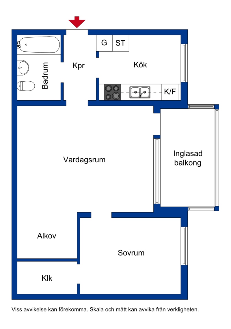 49,5 kvm , 2 rum och kök, varav 1 sovrum . Areauppgifter enligt bostadsföreningen . Byggnadsår: 1967