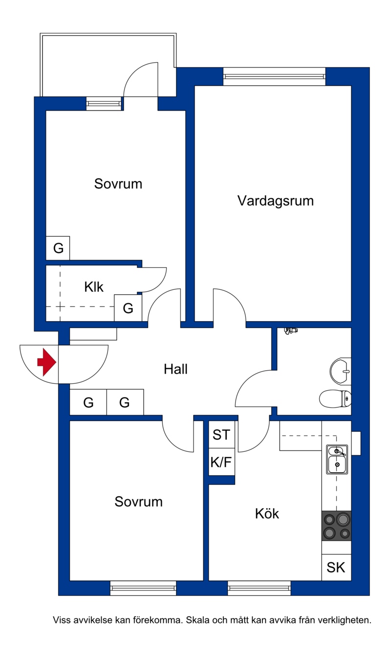 69 kvm , 3 rum och kök, varav 2 sovrum . Areauppgifter enligt mäklarbild . Byggnadsår: 1961