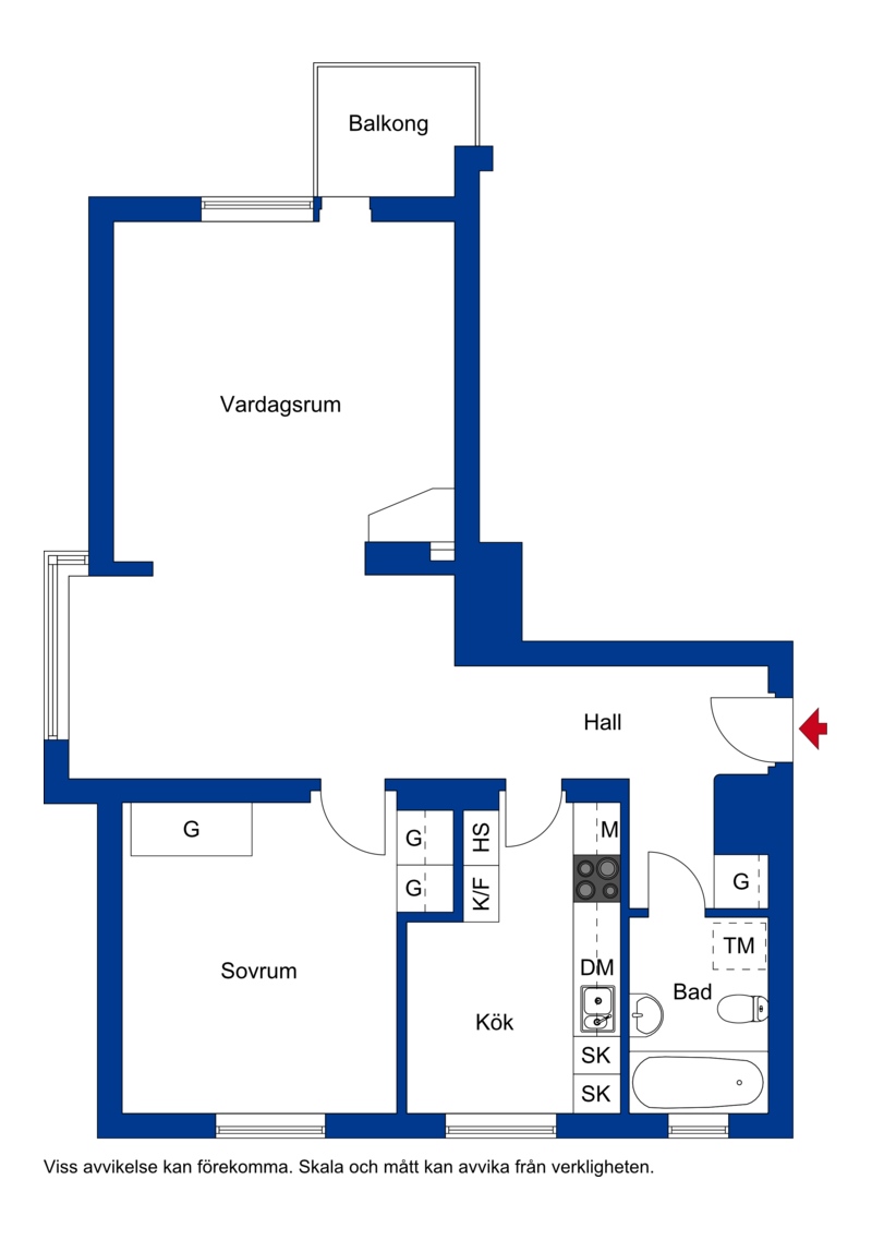 Flerfamiljshus, 66,1 kvm , 2 rum och kök, varav 1 sovrum . Areauppgifter enligt bostadsrättsföreningen . Byggnadsår: 1946