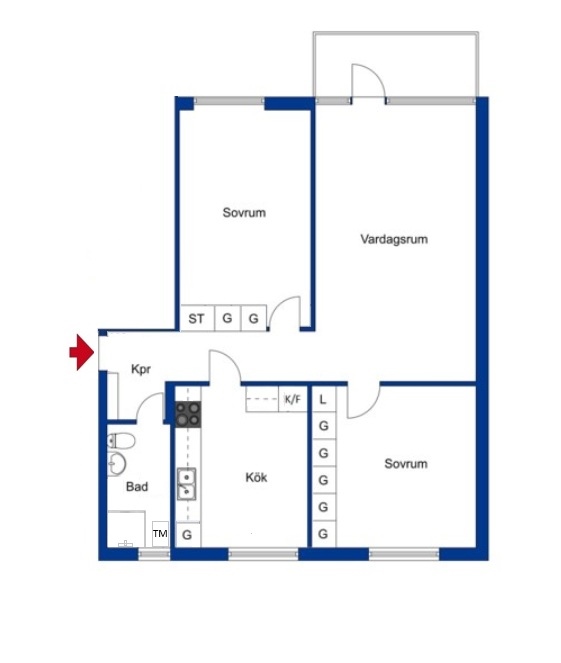 Flerfamiljshus, 76 kvm , 3 rum och kök, varav 2 sovrum . Areauppgifter enligt bostadsrättsföreningen . Byggnadsår: 1965