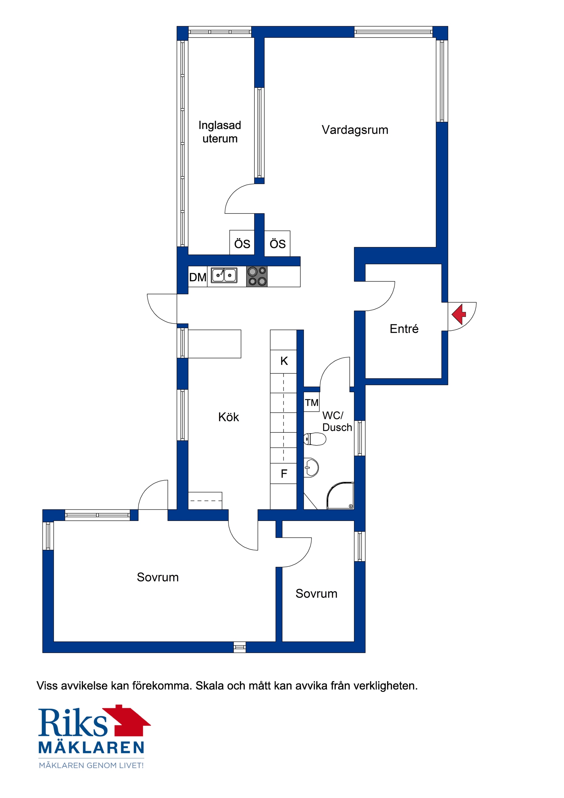 1 plan, 77 kvm + 15 kvm (biarea) , 3 rum och kök, varav 2 sovrum . Areauppgifter enligt taxeringsinformationen . Byggnadsår: 1960