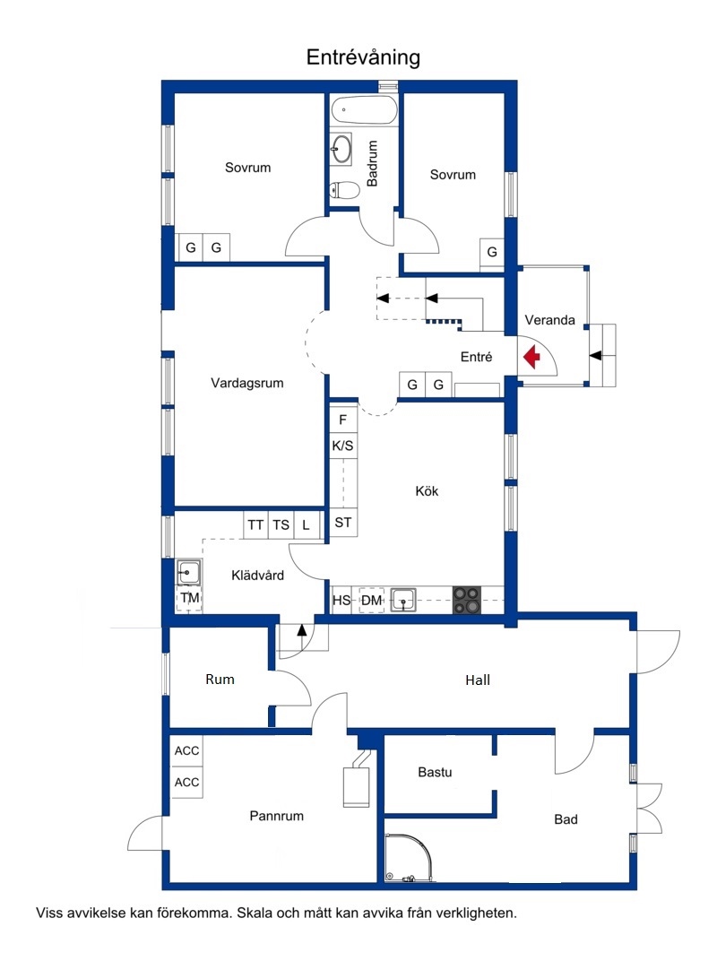 Här finns en inbyggd garderob för förvaring med klinkergolv och ljusa väggar, samt belysning i taket. Genom denna entré kommer du in till relaxavdelningen.