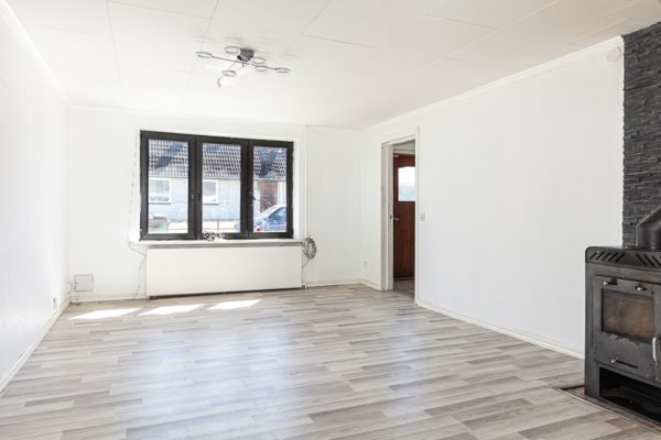 Luftigt vardagsrum med lättmöblerade ytor. Generösa fönsterpartier skapar ljus och rymd. Hög mysfaktor med kamin (godkänd). Golv laminat, ytskikt tapet.