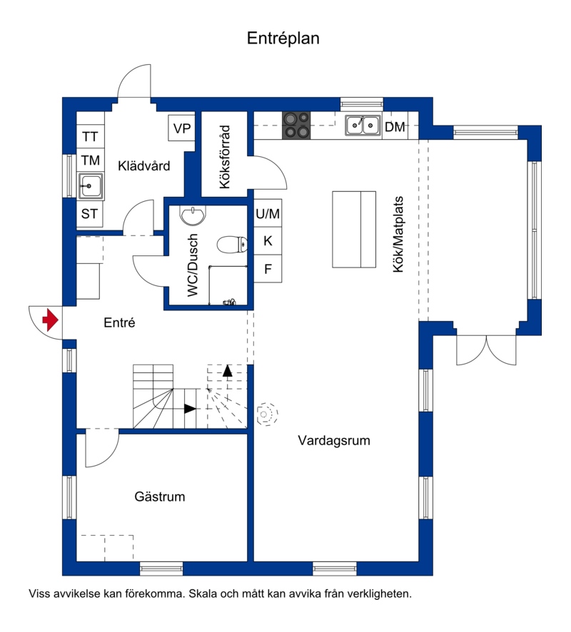 Från hallen kommer du in i vardagsrummet som ligger i en social och öppen planlösning mot köket. Här finns plats för möblering med soffgrupp fram braskaminen som värmer om kyliga kvällar. Rikligt med ljusinsläpp från fönster i flera väderstreck.
